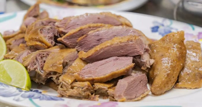 嘉義縣的水土似乎特別適合養鵝,產出的鵝肉品質極佳。這裡的鵝肉料理,追求的就是一個「鮮」字。不論是煙燻、鹽水還是白切,都力求展現鵝肉本身的鮮甜與豐腴。我特別鍾愛煙燻鵝,那帶著誘人琥珀色澤的外皮,散發著淡淡的燻香,皮下是晶瑩的膠質,肉質則是緊實多汁,香氣十足,完全不乾柴。鹽水鵝則更顯清雅,吃的是肉質的原味與細嫩。通常會附上店家特調的醬油膏或豆瓣醬沾食,但其實單吃就非常美味了。點鵝肉時,老闆常會問要前段(較肥嫩)還是後段(較紮實),依個人喜好選擇。一大盤油光亮澤的鵝肉上桌,光看就讓人垂涎三尺。這絕對是宴客或打牙祭時,能端上桌彰顯誠意與美味的好選擇!