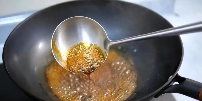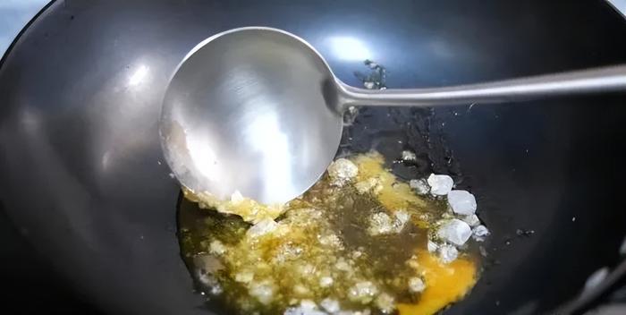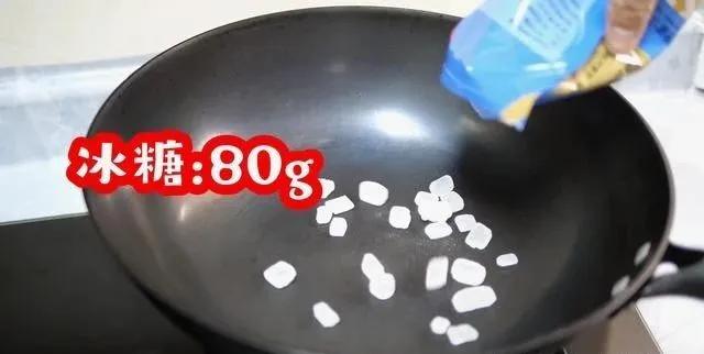 新手在操作炒糖色的時候,一定要放入少量的食用油,這樣下水的時候不會結晶,如果經常熟練操作,像我一樣就可以不用放油。全程都是直接開大火,它變色的速度非常的快。
