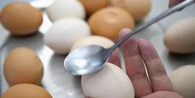 取出雞蛋以後,用勺子給它來回地敲打一下,如果想要吃得比較鹹,比較入味,那麼敲的時候一定要多敲一點。茶葉蛋的滷水配方你們一定要收藏好,我把它製作成表格放在文章結尾中。